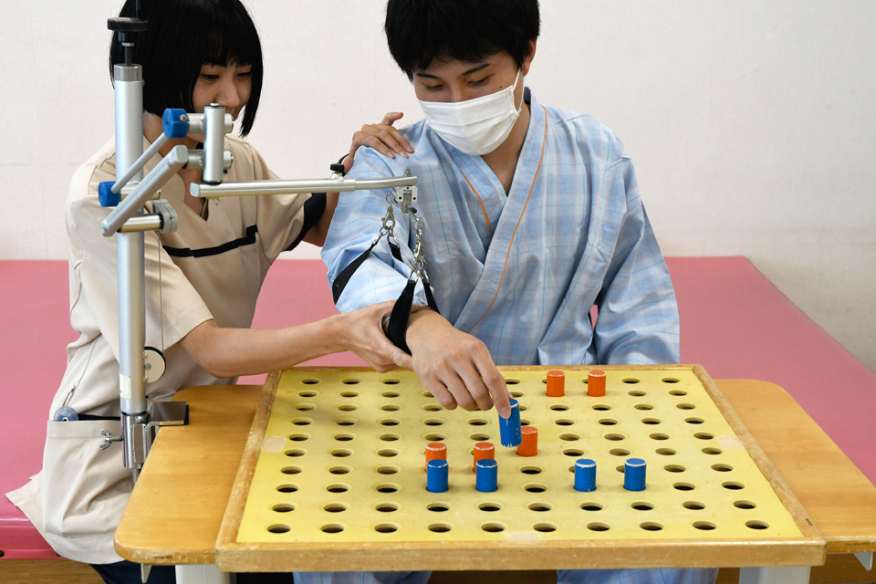 作業療法士は、食事・更衣・トイレ動作など、日常生活に欠かせない「生活動作」の再獲得を支援します。また、高次脳機能障害への認知訓練や、手の動作訓練などにも対応しています。当院では、高齢者の在宅復帰を見据え、実際の生活に即したリハビリを重視しています。家庭環境を想定した練習や、ご家族への支援も行っています。