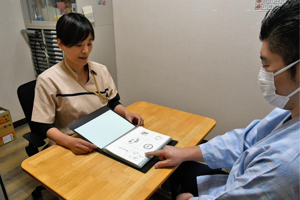 言語聴覚士は、「話す」「聞く」「食べる」といった機能に関するリハビリを担当します。脳卒中後の言語障害や、摂食・嚥下障害など、多岐にわたる障がいに対して個別支援を行います。当院では入院から外来まで継続的なフォローを実施し、患者様が安全に会話や食事を楽しめるよう支援しています。